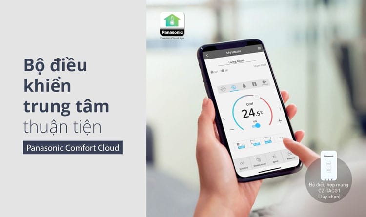 - Duy trì kết nối với Ứng dụng Panasonic Comfort Cloud (cần có bộ điều hợp mạng tùy chọn) để quản lý máy lạnh từ một thiết bị, nhằm bảo vệ không khí liên tục trong 24 giờ.